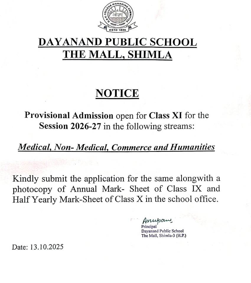 PROVISIONAL ADMISSION FOR CLASS XI (SESSION 2026-27)